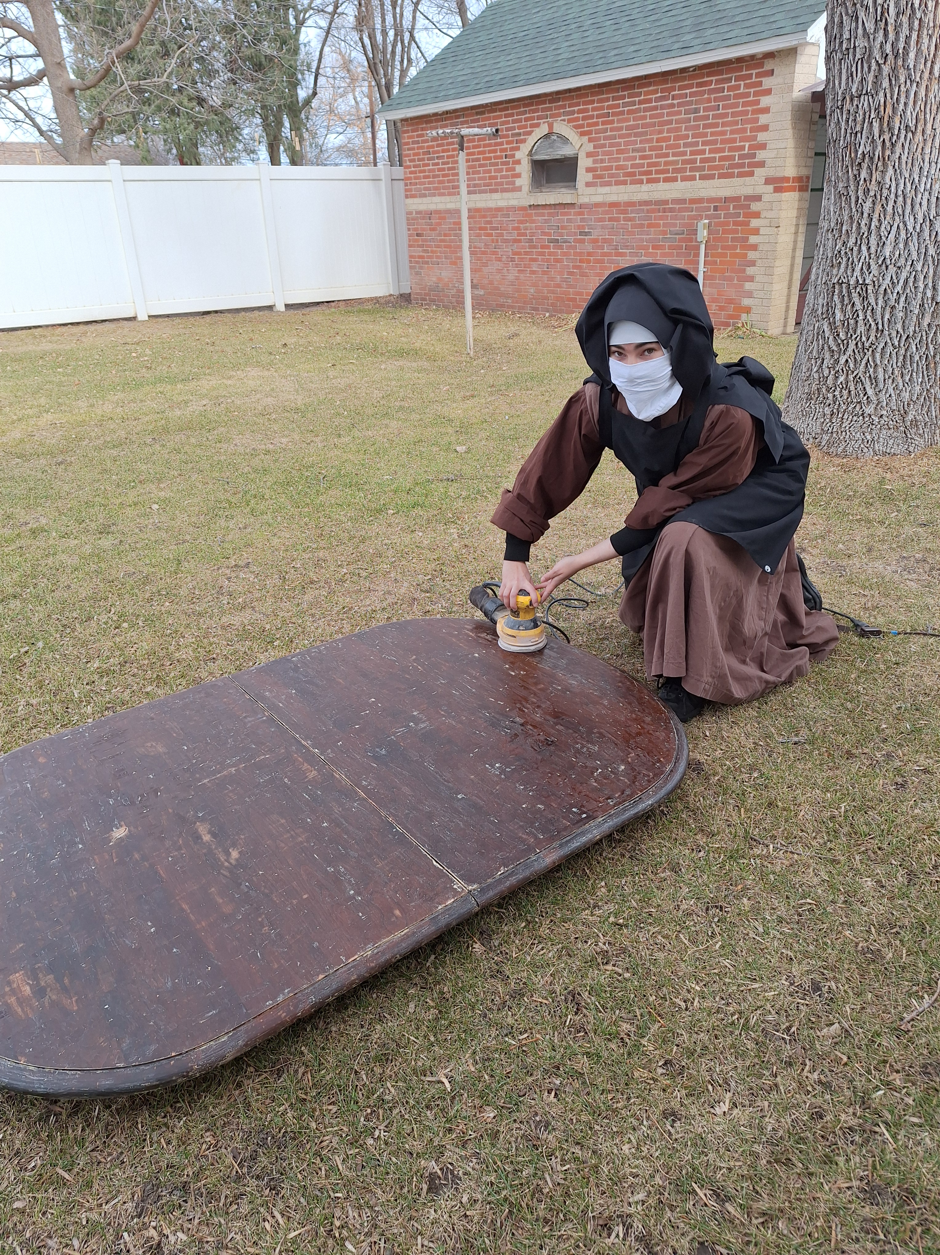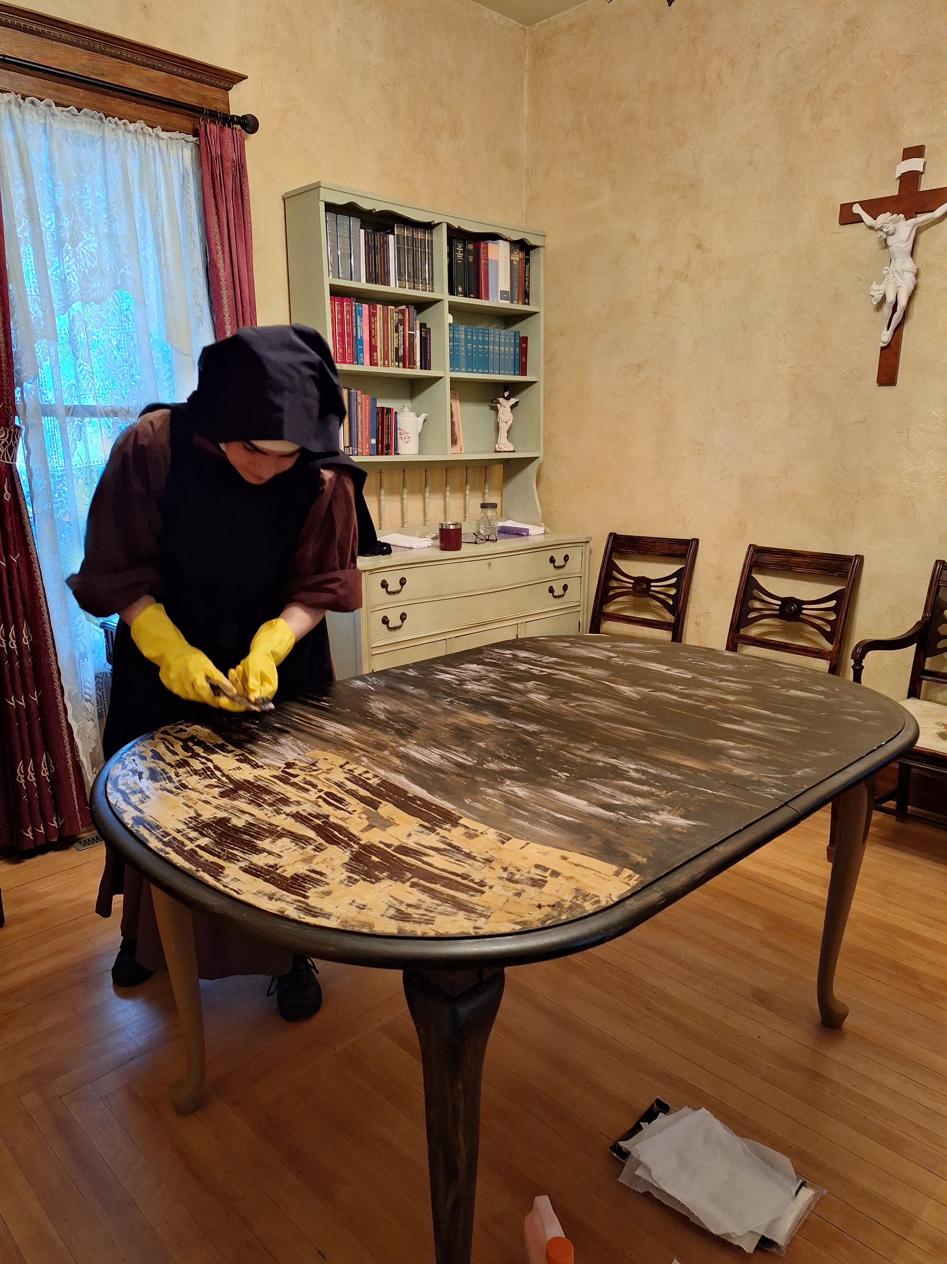 work she never imagined herself doing in the convent: stripping and refinishing old wood,